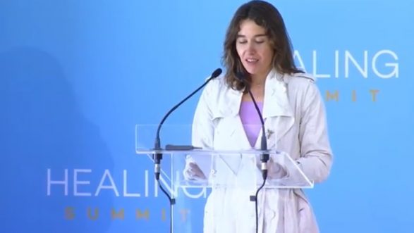 Gjatë fjalimit “Healing Summit 2019”,  mbajtur Portugali, ajo shpjegon rëndësinë e besimit ndjenjën dhe se si rrezatimi i paqes gjatë luftës Kosovë mundësoi paqja arrihet.