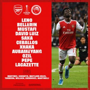 Po ashtu, Arteta startues në këtë ndeshje ka vendosur që të jenë: Leno, Bellerin, Mustafi, David Luiz, Saka, Ceballos, Xhaka, Aubameyang, Ozil, Pepe, Lacazette, përcjell Albinfo.ch.