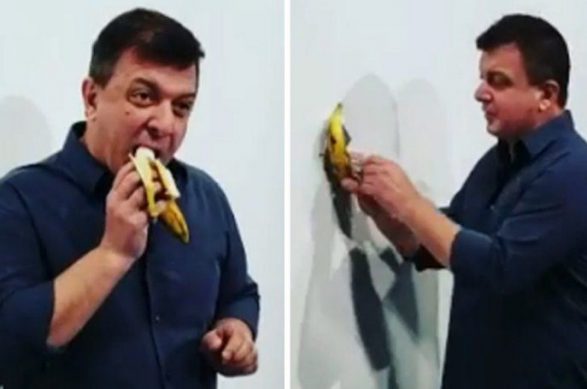 A keni ngrënë ndonjëherë një banane prej 120 mijë dollarësh? David Datuna, po. Artisti amerikan me origjinë gjeorgjiane, në Miami, hoqi veprën e Maurizio Cattelan nga muri dhe e hëngri.