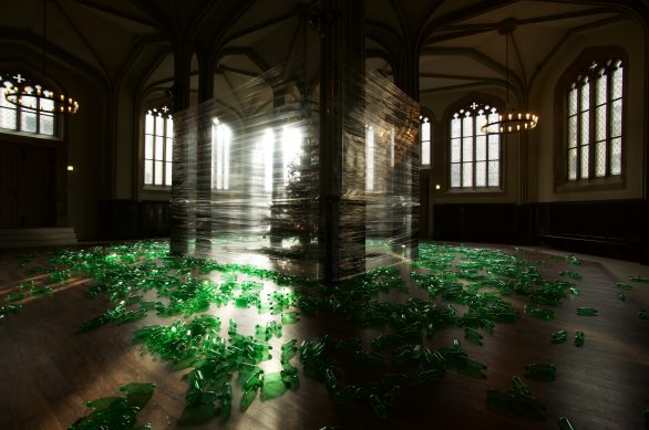 Shishat e gjelbra në skenë përcjellin imazhin e ndotjet gjithkund nëpër botë.
