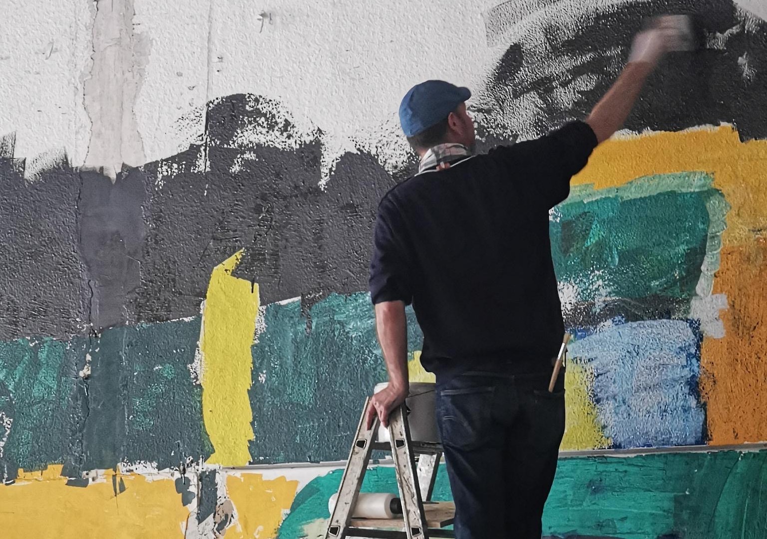 “Pëlhura” e Oranit këtu është muri i bardhë, i ashpër dhe i shpërndarë me tekstura të ndryshme. Zonat e suvatuara dhe të betonuara ofrojnë zona gjeometrike të formuara lirshëm duke e bërë të qartë se muret nuk janë vërtet të zhveshura ose të përgatitura për lyerje, por të strukturuara dhe sfiduese. Kjo kanavacë kërkon një dorë të fortë artistike dhe plotësohet siç duhet me një imazh ekspresionist të guximshëm, abstrakt që në disa vende arrin mbi 4 metra lartësi.