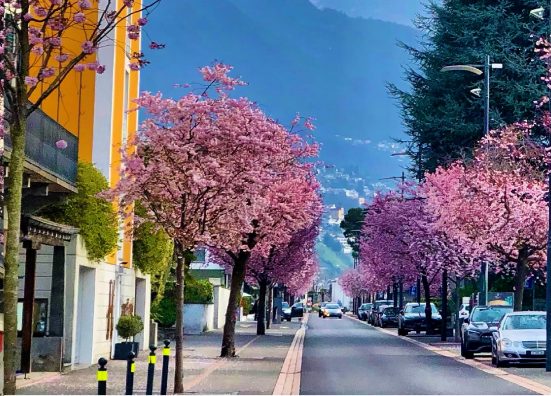 Në Ascona, qytezën pitoreske buzë liqenit Lago Maggiore kanë filluar të çelin lulet e pemëve rozë në ditët e fundit të stinës së dimrit.