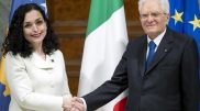 Presidentja e Republikës së Kosovës, Vjosa Osmani, e cila po merr...