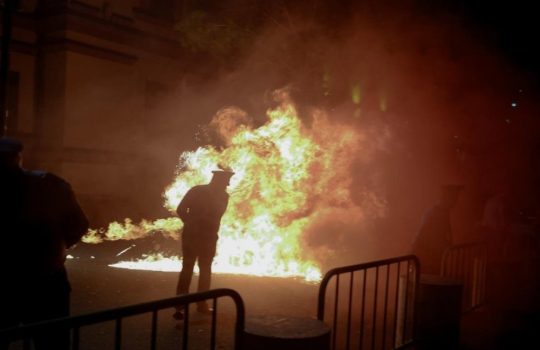 - Shqipëri: Opozita në protestë, molotov e fishekzjarre para kryeministrisëKa nisur përplasja e protestuesve të opozitës me policinë para Kryeministrisë....