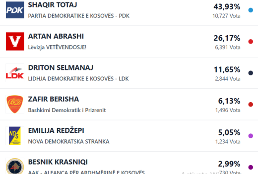 - Prishtinë: Rezultatet e para nga zgjedhjet lokaleSipas të dhënave të publikuara nga Komisioni Qendror i Zgjedhjeve (KQZ),...