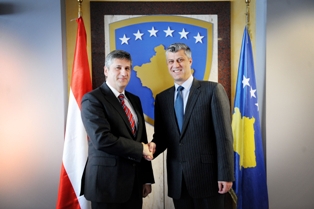 Presidenti Behgjet Pacolli dhe kryeministri Hashim Thaçi, në takime të ndara, kanë takuar sot shefin e diplomacisë së Austrisë, Michael Spindelegger.