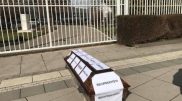 Kryeministrit të Kosovës, Albin Kurti, ia vendosin një arkivol para derës...
