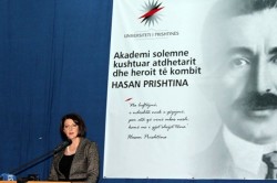 - Hasan Prishtinës, shtatore para Rektoratit të UP-sëNë Prishtinë u mbajt akademi solemne kushtuar atdhetarit dhe heroit Hasan...