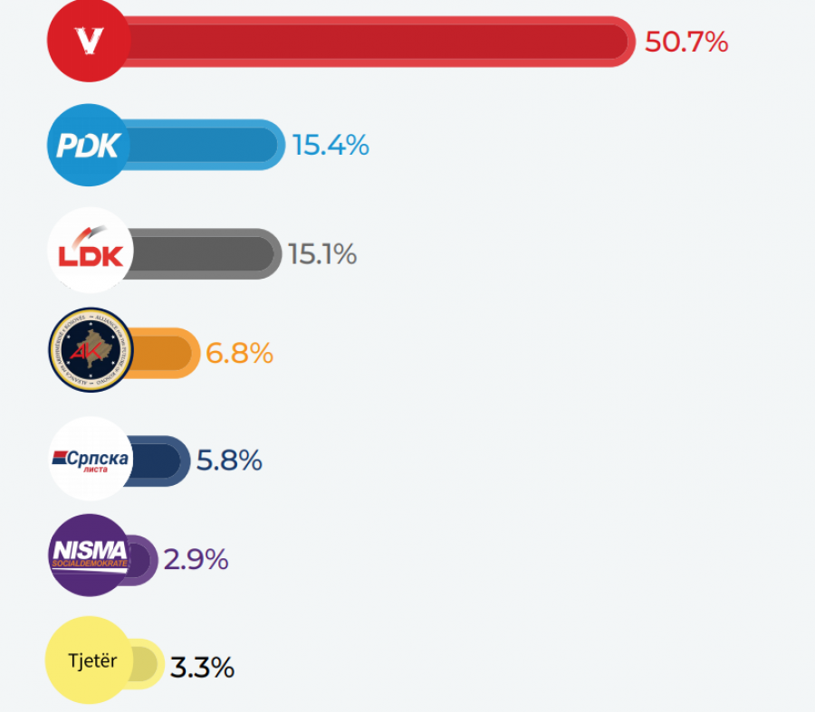 LDK-ja është e treta me 13.34%, ndërkaq AAK-ja 7.45 %...