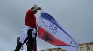 Tifozët shqiptarë sapo kanë shpalosur në Marsej flamurin gjigand të bërë...
