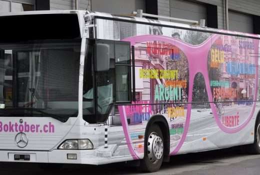 Ndër sloganet e shkruara janë ato: „Myslimanët jashtë Zvicrës“ dhe „Kurani,...
