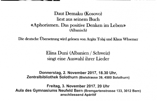 - Prezantohen “Mendimet pozitive” të Daut DemakutMë 2, 3, 4 dhe 5 nëntor, nën organizimin e Ambasadës...