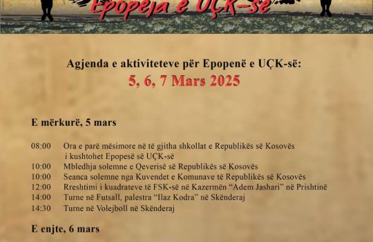 - Publikohen logo dhe agjenda e aktiviteteve për 27-vjetorin e Epopesë së UÇK-sëQeveria e Kosovës ka publikuar logon dhe agjendën e aktiviteteve për...