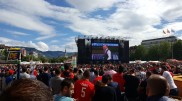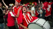 Tifozët shqiptarë në sheshin Planpalais të Gjenevës
