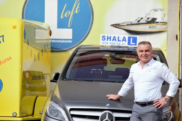Në vitin 1992 kishte ardhur në Zvicër. Që nga ajo kohë kishte filluar të punonte si shofer i kamionëve. Gjatë kohës sa bënte punën e shoferit, ai njëkohësisht punonte edhe si instruktor autoshkolle. Më 2008 përfundoi shkollën dhe prej atëherë nisi punën e rregullt të instruktorit, të cilën e bën edhe tani. Po të njëjtin vit ka hapur edhe autoshkollën me emrin “Shala”.