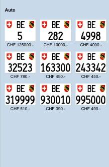 Në Kantonin e Bernës, në rrjedhë e sipër është ende ankandi në fjalë: Këtu bëhet fjalë për autotargën “BE 5” e cila është pika më tërheqëse në garë.