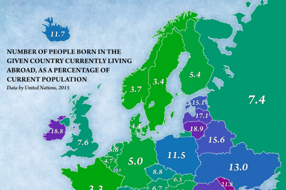Nga këto vende, sipas të dhënave nga viti 2015, kanë emigruar pothuajse një e pesta e popullsisë së lindur atje.