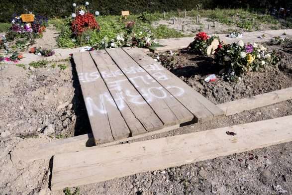Ndër sloganet që ishin shkruar në varre janë ato: “Myslimanët jashtë Zvicrës” dhe “Kurani, plumbi i terrorizmit”.