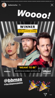 Në kategorinë “Top këngët më të mira të zhanrit country”, “Meant to be” e artistes shqiptare Bebe Rexha, la pas këngët si: “Heaven” nga Kane Brown, “She Got the Best of Me” nga Luke Combs dhe këngët “Speechless” dhe “Tequila” nga Dan + Shay.