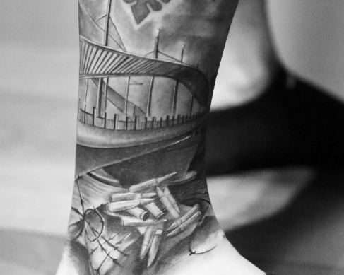 Edhe plumbat janë pjesë e tatuazhit të ri në këmbë. Ngjitur me këtë tatuazh mbetet edhe shqiponja dykrenore.