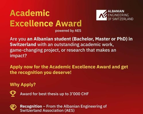 Shoqata e Inxhinierëve Shqiptarë në Zvicër, Albanian Engineering of Switzerland (AES), për herë të parë ndan Çmimin për Përsosmëri Akademike.