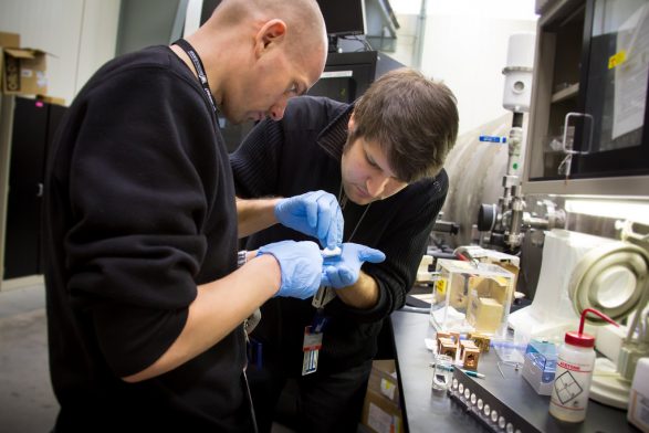 E gjithë kjo multiferikët elektromagnetikë i bën shumë interesantë nga pikëpamja ekonomike. Por si mund të bëhet e mundur e pamundura? Në laboratorin e tij në PSI, Tian Shang na tregon pluhurat e ndryshëm kristalorë gri, të bardhë dhe të verdhë, të cilët ai i nxeh për testimet e tij në një furrë laboratorike: Këtu përdorim barium, bakër, hekur dhe dhe të rrallë, i ngrohim për dy ditë në një temperaturë mbi 1100 ° C, shpjegon fizikanti. Pastaj i ftohim pluhurat për t’i sjellë ato ngadalë në temperaturën e dhomës, para se t’i shtrydhim në fishekë, të cilat pastaj i ngrohim përsëri për 50 orë. Më në fund, menjëherë i ftohim me azot të lëngët. Pellgu gri i matur i marrë në fund të kësaj procedure, quhet një perovskite prej bakër-hekuri. Ky kristal në maje të gishtave, në shikim të parë nuk është spektakolar.