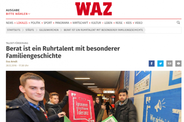 Berat Arifit është në klasën e 12-të të shkollës gjithëpërfshirëse Berger Feld dhe është propozuar nga Ruhr si talent për promovim të veçantë