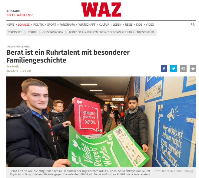 Prindërit e Berat Arifit erdhën në Gjermani, pasi shpërtheu lufta në Kosovë. 18-vjeçar është zgjedhur si njëri nga talentet e rajonit në Ruhr, shkruan ‘was.de’. “Talentet e Ruhrit” është emërtimi i bursës që jepet për nxënësit më të dalluar, zhvillimi i të cilëve pastaj përcillet dhe mbështetet nga shteti.