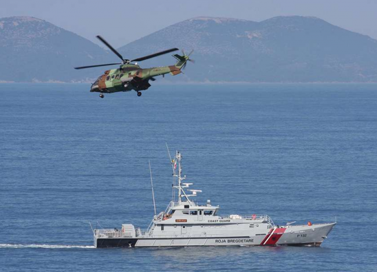 Në aksionin për shpëtimin e çiftit zviceran janë mobilizuar anije dhe helikopterë të Forcave Bregdetare të Ushtrisë Shqiptare, siç tregon edhe fotografia që po shihni