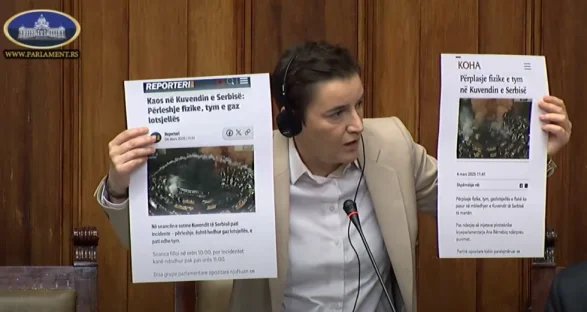 Në mes të tensioneve dhe përplasjeve në Parlamentin e Serbisë, kryeparlamentarja Ana Bërnabiq, ka bërë propagandë në foltore duke thënë se opozita serbe “po i kënaq terroristin Albin Kurti dhe mediat në Kosovë”. Ajo vazhdimisht përdori gjuhë fashiste duke përdorur fjalën “shiptari”.