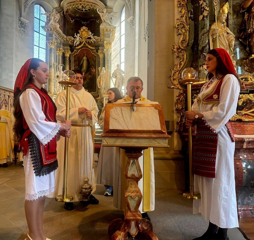 Gjatë meshës, vëmendjen e morën fëmijët e veshur me kostume tradicionale shqiptare, pamje kjo që dëshmon përpjekjen e komunitetit për t’ua trashëguar kulturën brezave të rinj edhe në mërgim.