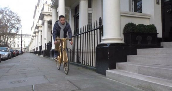Pothuajse çdo pjesë e biçikletës është e mbuluar me ar, duke përfshirë zinxhirin dhe krahët.