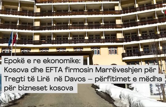 - Epokë e re ekonomike: Kosova dhe EFTA Firmosin Marrëveshjen për Tregti të Lirë – Përfitimet e mëdha për bizneset kosovareNë Davos, në kuadër të Forumit Ekonomik Botëror, është arritur një...