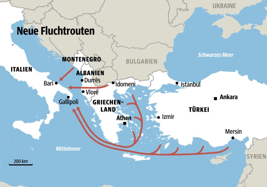 Me zvogëlimin e fluksit në korridorin e Ballkanit, po flitet për rrugë tjetra, më të shtrenjta, dhe më të rrezikshme për të transferimin e refugjatëve në Evropë, shkruan e përditshmja gjermane Sueddeutsche Zeitung, përcjell albinfo.ch.
