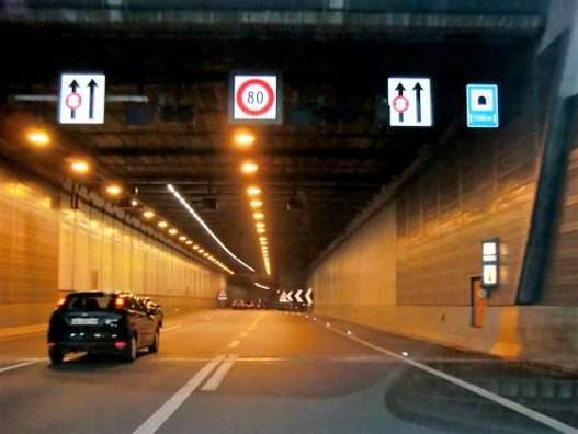 Për shkaqe sigurie, policia e ka bllokuar tunelin në të dy drejtimet, duke e kontrolluar veturën me një qen nuhatës të rojës kufitare zvicerane.