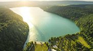 Për të kombinuar turizmin dhe ekologjinë, liqeni Chalain, në Jurën franceze,...