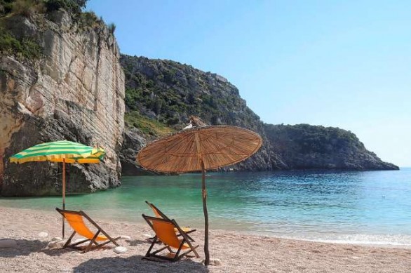 “Ju deshët të kaloni natën në plazh?, pyet drejtuesi i barit në gjirin e vetmuar të Gramatës, 30 minuta me barkë Dhërmiu. “Mereni pra një tendë nga ne, është tashmë e montuar”. Paas pak ai sjell një gotat e mbushura përplot me raki. Na qeras.
