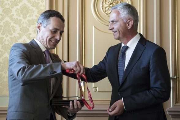 Didier Burkhalter ia ka dorëzuar sot ministrit të ri, Ignazio Cassis me një ceremoni zyrtare “çelësin” e Ministrisë së Punëve të Jashtme. Në këtë mënyrë ai edhe simbolikisht ia ka kaluar atij funksionin e ministrit të jashtëm dhe të pjesëtarit të Këshillit federal, njoftojnë mediet zvicerane sot.
