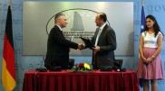 Ministri Enver Hoxhaj dhe ambasadori Ernest Reichel nënshkruan marrëveshjen për bashkëpunim...