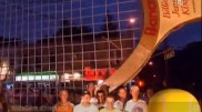 Një raketë e madhe tenisi, e ndërtuar prej druri në New...