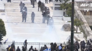 Protestuesit janë përleshur me policinë jashtë ndërtesës së Parlamentit të Greqisë,...