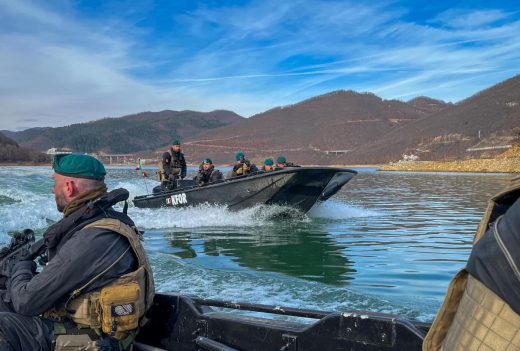 Njësia për Ndërhyrjen e Shpejtë e Policisë së Kosovës patrullon me barka në Ujman