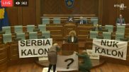 Deputetët e AAK-së vendosin pankarta me mbishkrimin “Serbia nuk kalon”