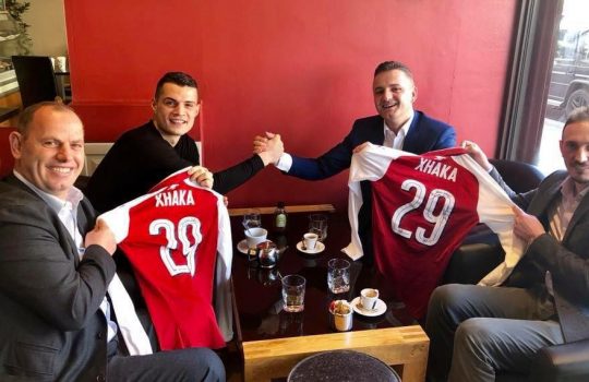 - Xhaka u dhuron fanella Bekim Jasharit e Ramiz LladrovcitDy kryetarët: Bekim Jashari i Skenderajt, dhe Ramiz Lladrovci i Drenasit,...