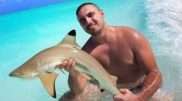 Në video shihet Gjiko, duke nxjerrë një peshkaqen me grep, duke...