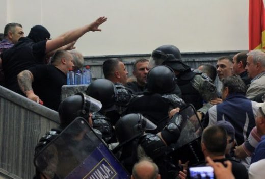 Policia po i mbron deputetët që votuan për marrëveshjen në Maqedoni