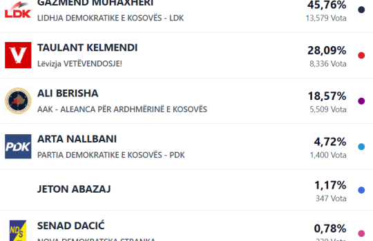 - Gazmend Muhaxheri i LDK-së kryeson në Pejë me mbi 45 për qind të votaveKandidati i Lidhjes Demokratike të Kosovës (LDK), Gazmend Muhaxheri, po udhëheq...