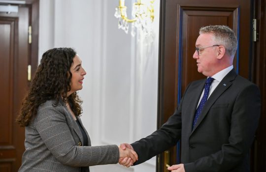 - Osmani pret në takim ambasadorin e ri të OSBE-së, Gerard McGurkPresidentja e Kosovës Vjosa Osmani ka pritur dje në takim njoftues...