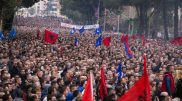 Shqipëri: Protestuesit i vënë flakën ‘piramidës së krimit’