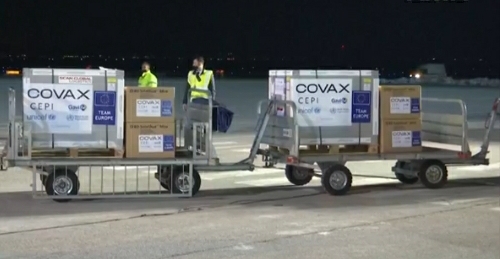 Aeroplani bartës i kontingjentit të parë të vaksinave antiCOVID-19 nga COVAX,...